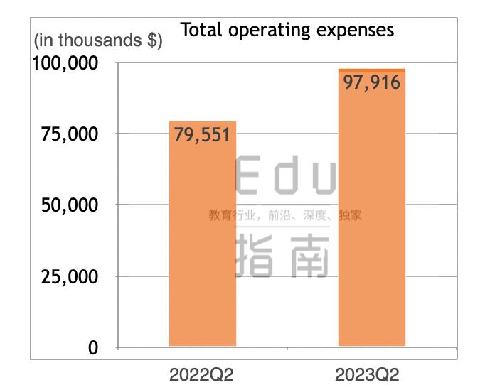 Duolingo公司本季度总运营费用为9792万美元,上一财年同期为7955万美元,本季度该费用增幅为23%。