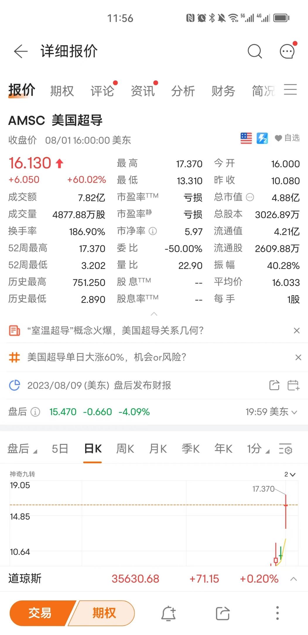 发布财报前后,美国超导股价已经由8月1日最高点17.37美元下跌至8.54美元,股价惨遭腰斩。而在此前的8月1日当天,曾一度上演上涨140%戏码。