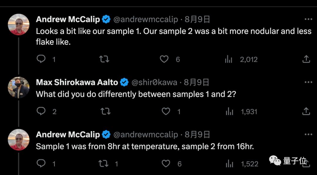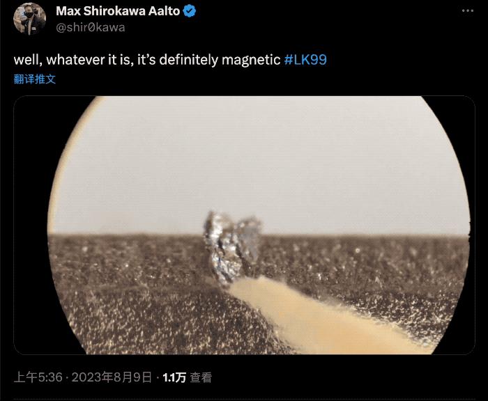 再看𝕏(原Twitter)上,一位用户名带日语但地点、机构未知的网友Max Shirokawa Aalto,第三次实验也搞出一小片对磁铁有反应的样品。