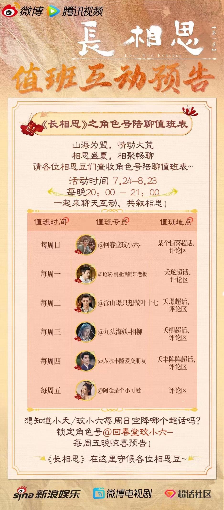 对微博来说,这已经是一套成熟的玩法,粉丝愿意参与,也容易产生更多的话题帮助剧集营销。如法炮制,今年在播的《长相思》也沿袭了这同一套打法,主角的微博账号诞生在剧集更新之前,随着播出剧情一起更新,值班陪聊也少不了。