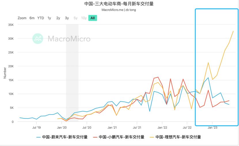 其一,理想的估值能力跃升始于2022年10月,此时恰逢L9交付期,企业销售规模开始领先于同类企业,理想的造车爆款效果突出,这是目前为止理想股价走高的重要原因;