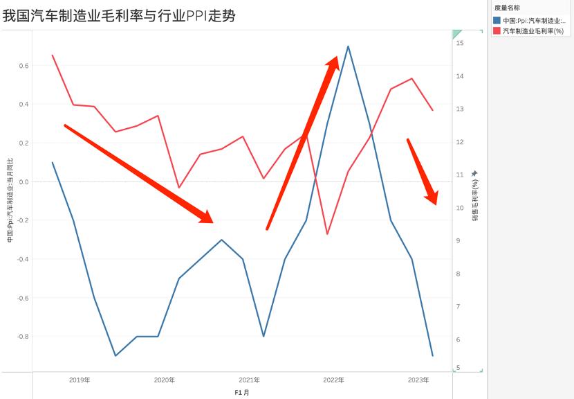 我们统计了所有A股汽车制造业的毛利率(包含主板,科创板,创业板和新三板),将其与汽车制造业PPI进行对比,见下其中图