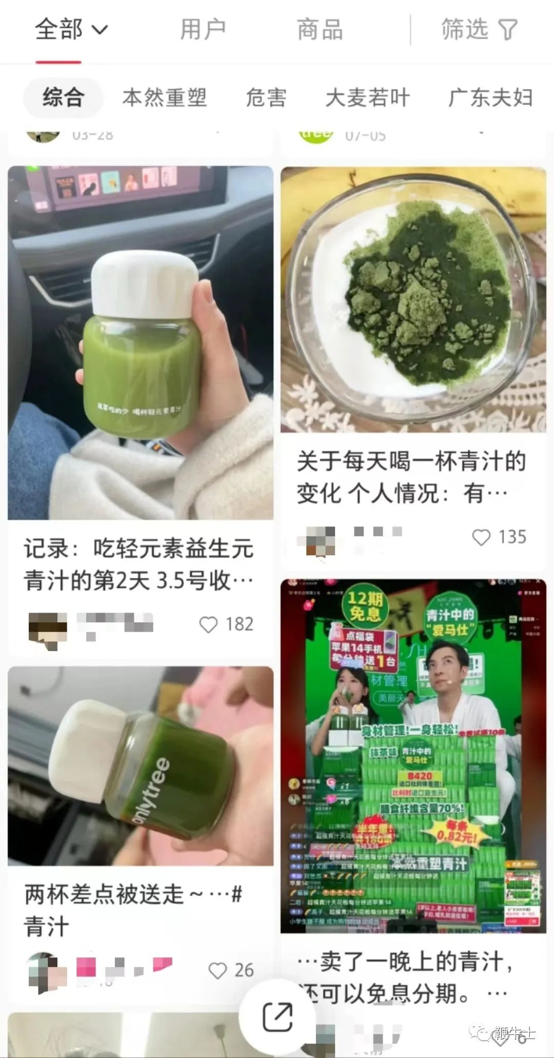 此外,关于青汁的测评、记录喝青汁的变化等帖子也收获不少点赞。