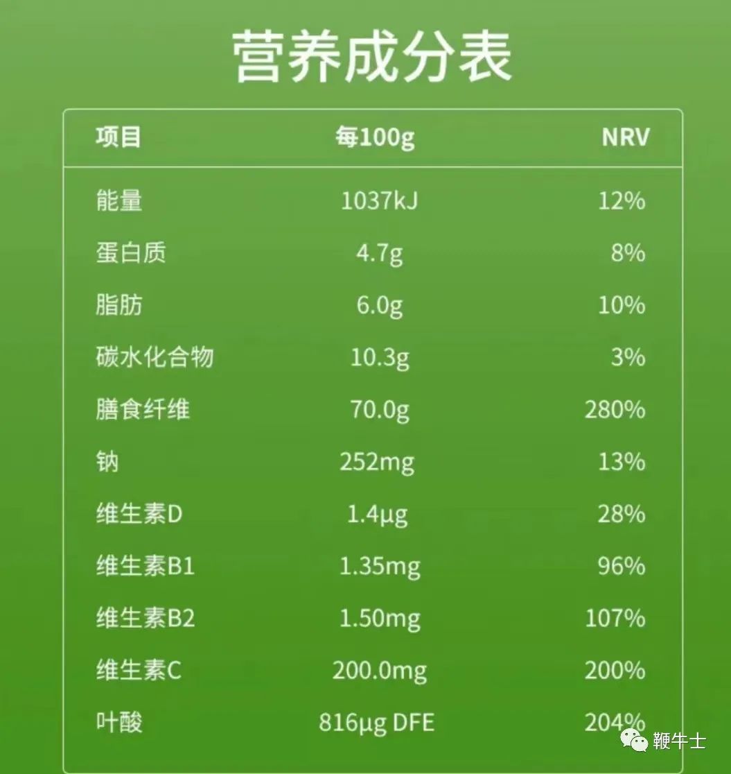 不可否认,大麦青汁具有一定的营养价值,主要成分正是主播们所说的膳食纤维,其次还有一定的叶酸和少量的钾离子。(但如果说富含蛋白质和钙一定是忽悠人的。)