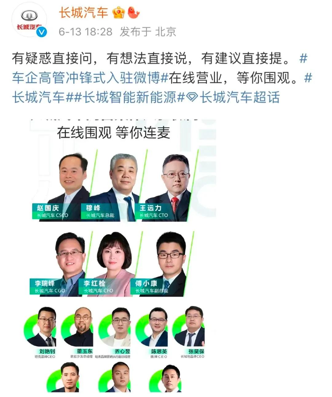 今年6月份,长城汽车总裁穆峰在2022年股东大会上说,“在用户运营方面,我们看到蔚来;在社交平台营销方面,我们看到了‘微博之王’理想;在智能驾驶领域,我们看到了小鹏的技术深耕。”长城汽车依然是追随者。