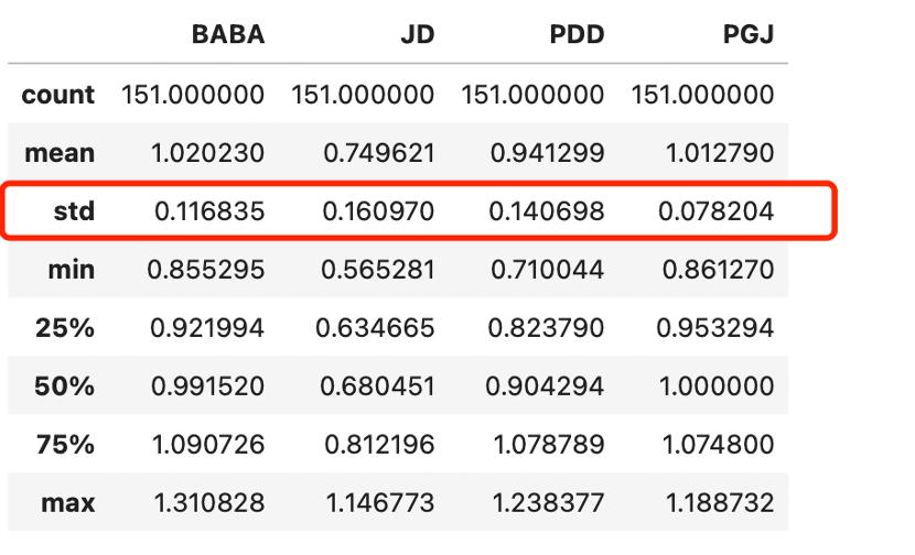 我们也可以发现阿里和拼多多的标准差正在向指数基金靠拢(理论上指数基金由于分散了风险,波动性要小很多),值得注意的是同期京东这一数值仍然偏大。
