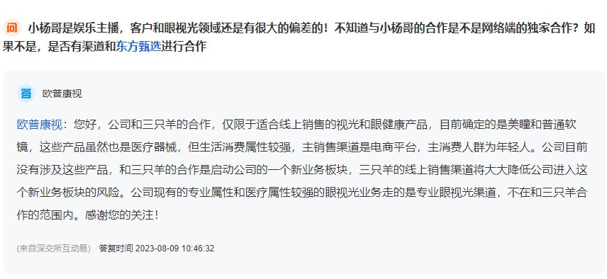 虽然合作的产品项目仍旧是欧普康视擅长的领域,不过在有些股民看来,这次和头部网红的跨界合作,仍旧显得有失上市公司的身份。