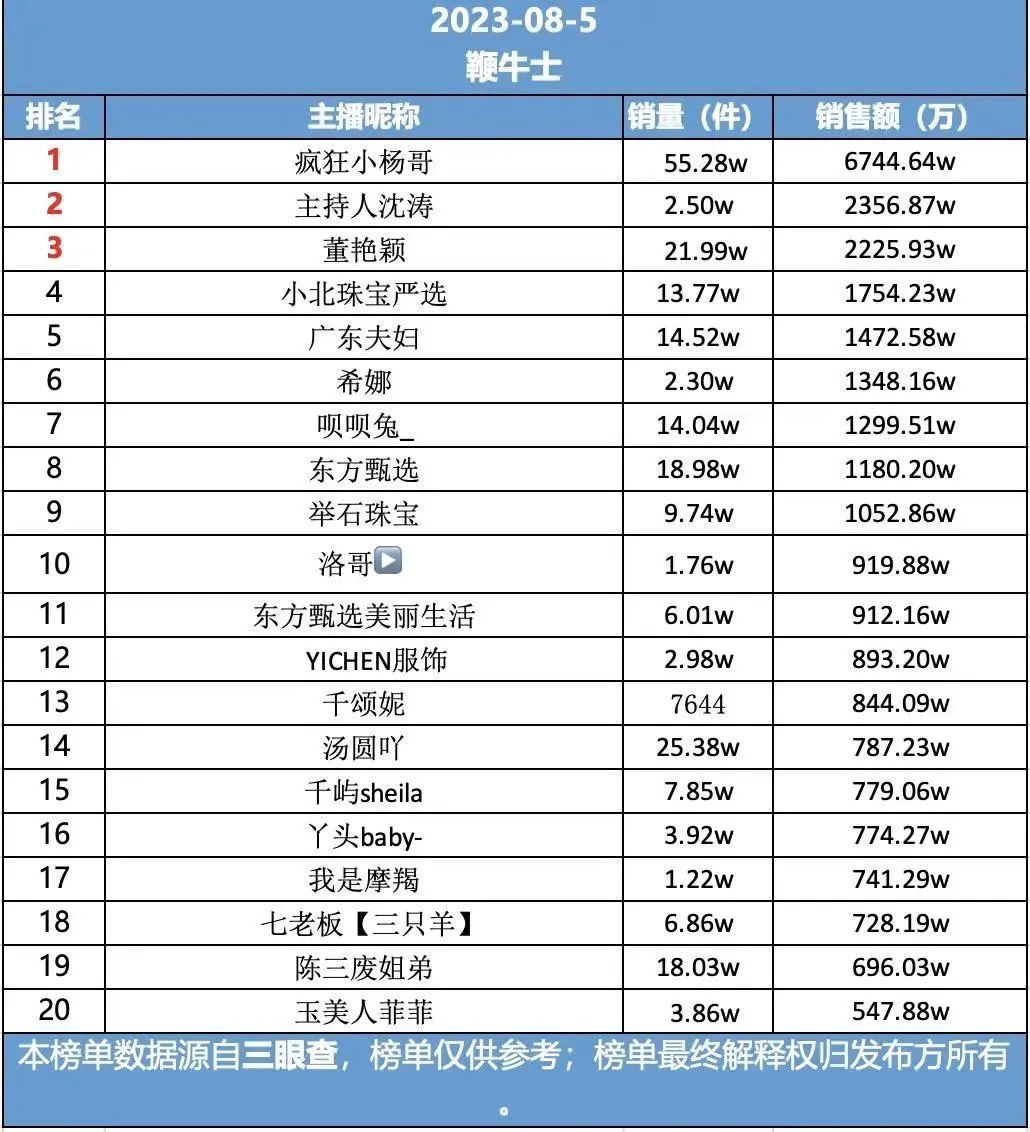 不过尽管直播风格仁者见仁,但是在带货能力上,疯狂小杨哥仍是整个行业内的顶流,根据鞭牛士的数据显示,在最近的一场直播中,疯狂小杨哥直播斩获了超过6700万的销售额,在平台内断崖式领先。