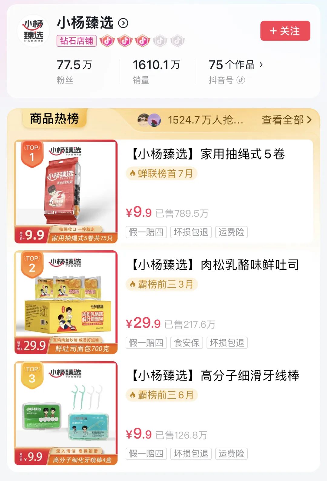 螺旋实验室注意到,今年以来,三只羊网络旗下的直播间都在大力推广自有品牌“小杨甄选”,该品牌Slogan为“好东西用得起”,定位是“甄选高性价比的生活好物平台”,目前已经推出了小杨甄选垃圾袋、小杨甄选手口湿巾等二十多款产品。今年5月31日,三只羊网络宣布“小杨臻选”全网产品总销量已突破1000万单。