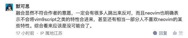 此话一出,有不少开发者直接提议,“希望 Vim 团队能够与 Neovim 团队沟通一下,最好是社区能够融合”。