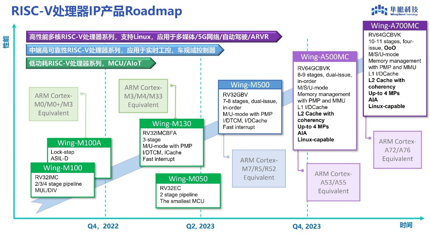 公司已发布首个RISC-V MCU处理器IP家族,包括首个RISC-V车规处理器IP产品Wing-M100A、多功能RISC-V车规处理器IP产品Wing-M130以及高性能RISC-V车规处理器IP产品Wing-M500三款IP产品。其Wing系列处理器核IP完全自主可控,并采用了DSA专用处理器设计思路,实现了ASIC级别的硅效率,达到性能、功耗、硅成本的最优解。