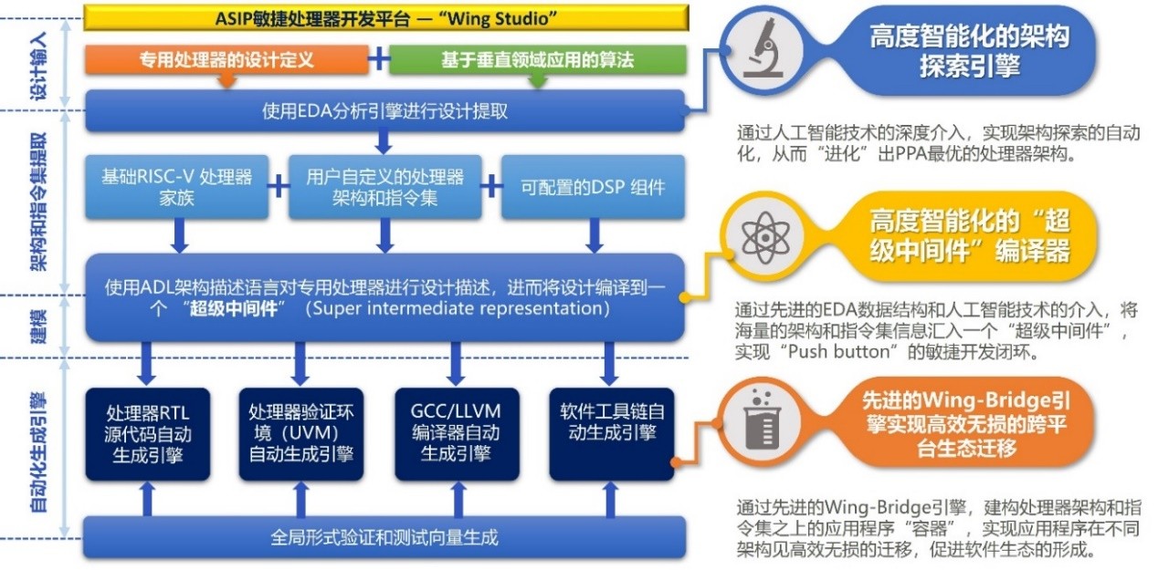 众所周知,架构和指令集定制是RISC-V公认的优势,但手工定制设计的高难度、繁复的工作量使得大部分芯片客户望尘莫及。如何简化设计流程,降低设计门槛成为EDA产品要面临的关键问题,隼瞻科技自主研发的ASIP处理器敏捷开发平台WingStudio应运而生。