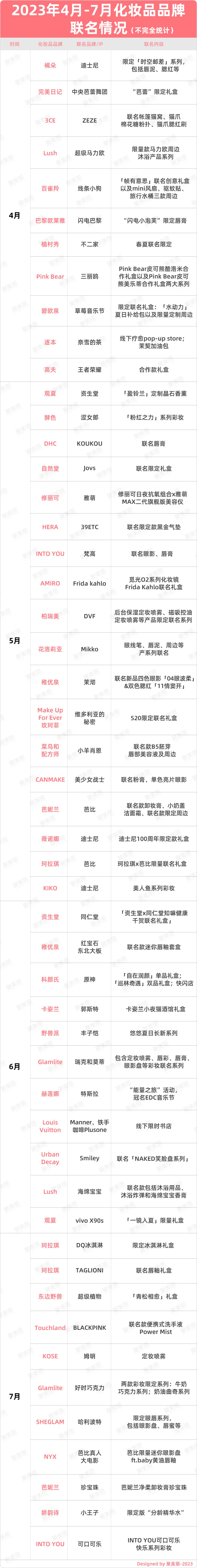 对比今年1-7月的70多起美妆品牌联名,足以证明美妆联名依然“火热”,背后的原因无外乎以下3点: