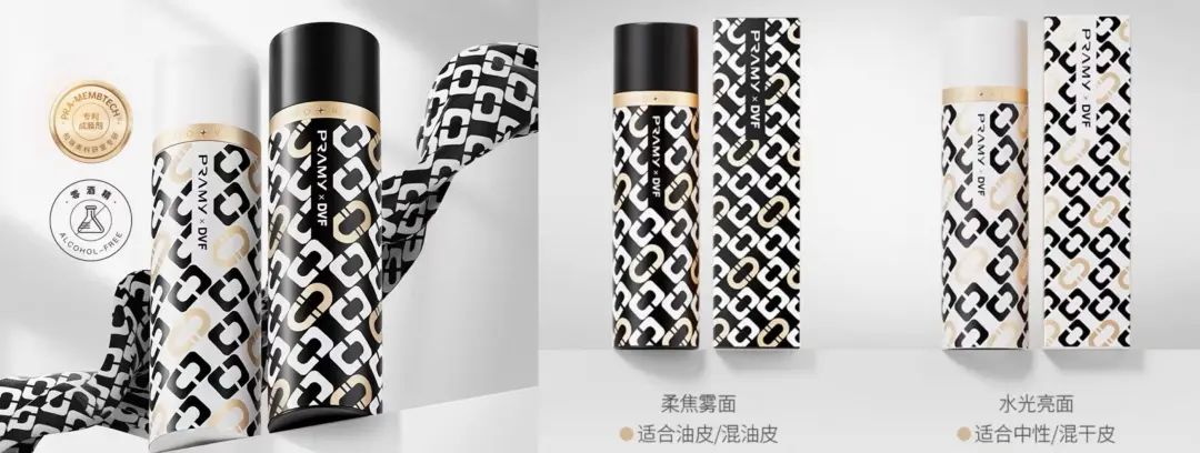 比如,今年PRAMY柏瑞美与时尚品牌Diane von Furstenberg(DVF)跨界联名合作,旨在为现代女性打造时尚、持久的妆容体验,并传递“InCharge your confident life,and lock in your beauty”的精神理念。
