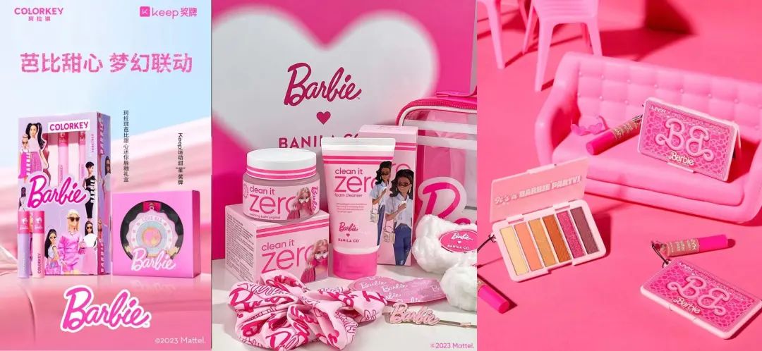 欧莱雅旗下的彩妆品牌NYX和芭比合作推出的芭比彩妆系列,包括彩妆盘、腮红、唇釉、眼线笔、假睫毛以及翻盖手机造型化妆镜。7月13-14日,NYX又邀请了多位KOL参加在美国加州洛杉矶举行的盛大芭比派对,赚足了热度。