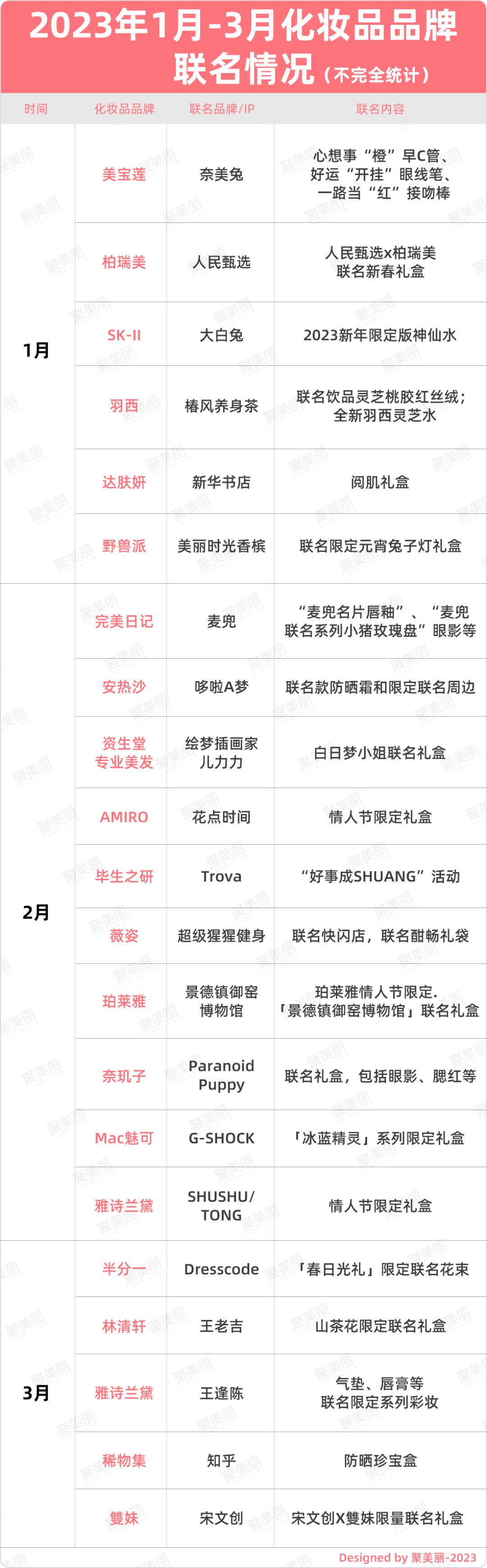 通过梳理,聚美丽发现美妆品牌联名IP有以下4个特点: