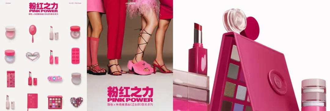 “高颜值”的产品对于女性消费者来说会更有购买欲,因此,联名活动中,不管是推出的海报还是产品,要从视觉上就能通过“颜值”吸引消费者的目光。比如酵色与朱德庸漫画《涩女郎》联名推出的粉红之力系列彩妆。