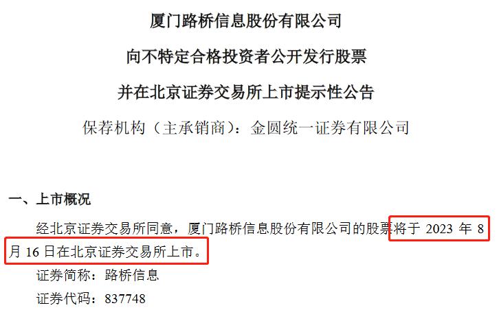 路桥信息将于8月16日北交所上市,发行价7元/股
