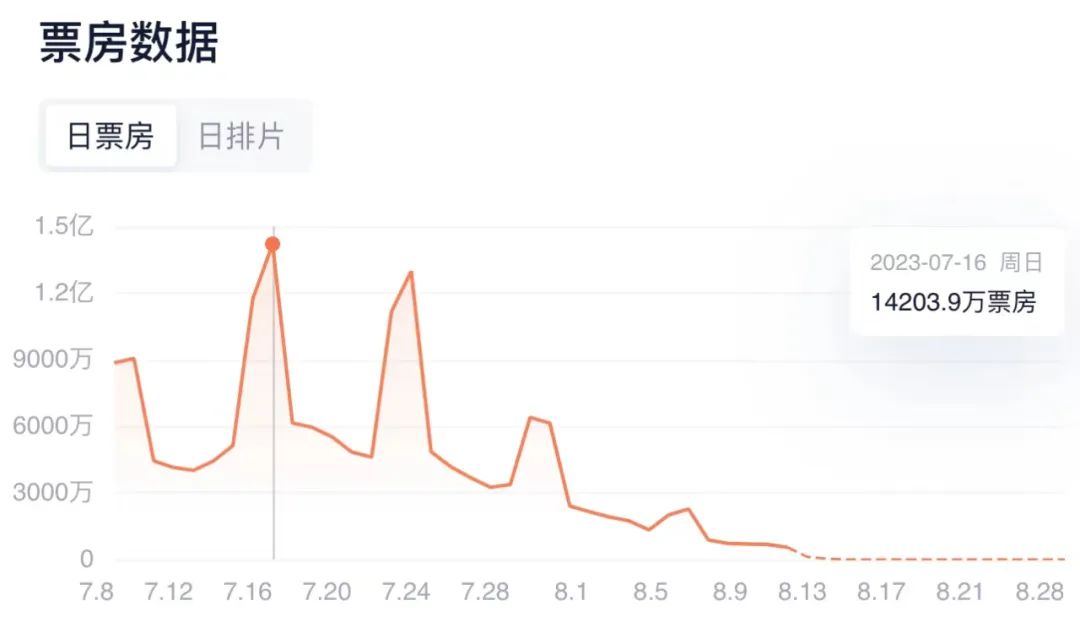 直至《封神第一部》的正式公映,《长安三万里》才被拉下日冠位置,此时已经是该片上映的第 13 天。尽管该片排片量受到新片影响,但仍然在上映第二个周末两天拿下超过 30%的超高上座率,同时维持住了 1亿+的日票房产出。