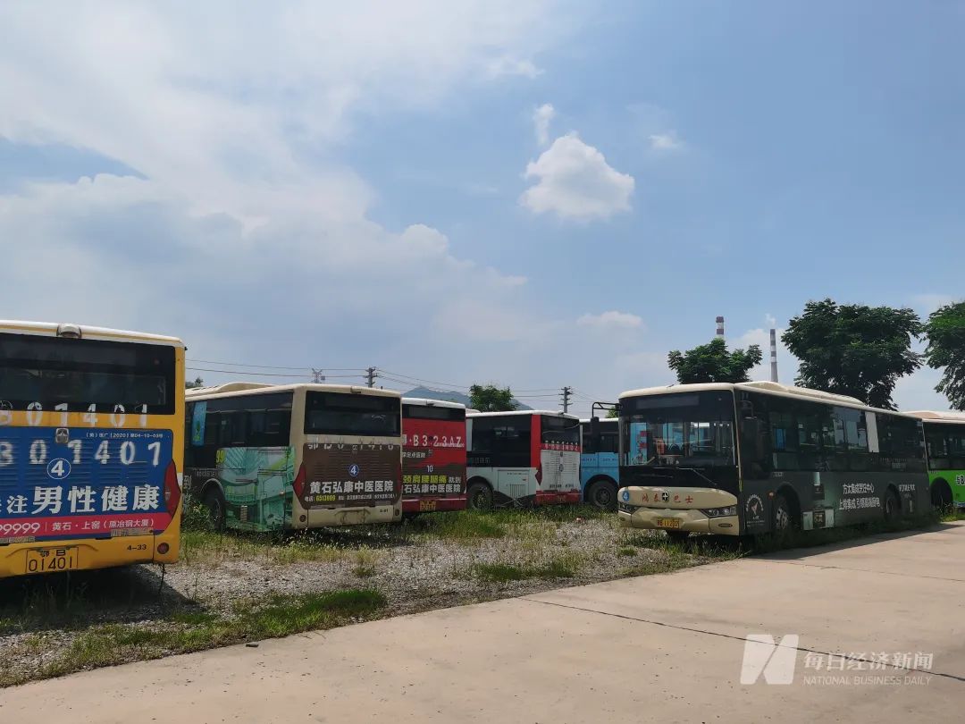 8月10日,《每日经济新闻》记者来到湖北黄石,实地探访了处于漩涡中的黄石市鸿泰公共巴士有限公司(以下简称黄石鸿泰)。记者在该公司的停车场看到,烈日之下,数十辆停止运营的公交车旁边荒草丛生,车内积满了灰尘。