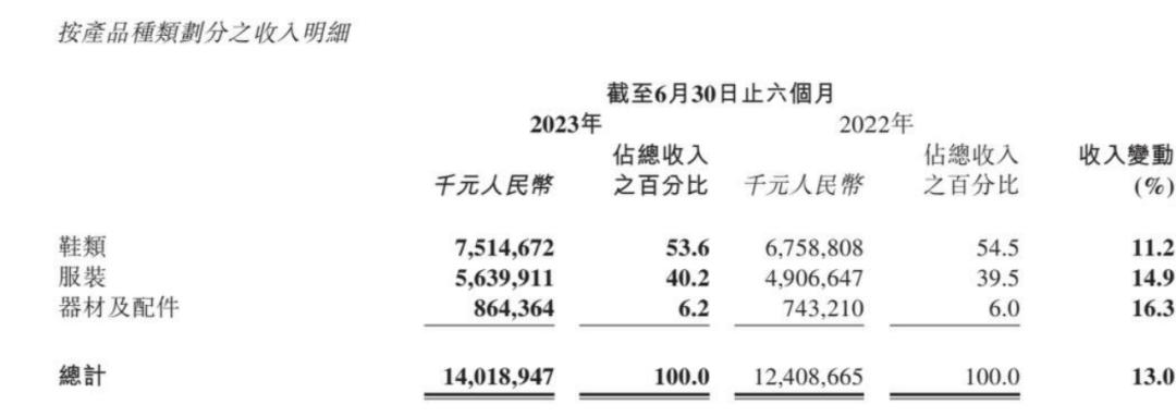 截至2023年6月,李宁鞋类业务占比54%,超过服装占比。在运动品牌行业中,鞋类业务收入占比是衡量品牌专业运动实力的重要指标。