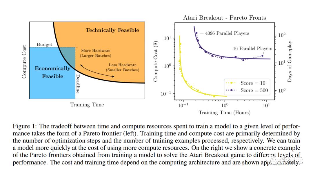 即使是极端的并行化,也不会对学习效率造成太大影响,因为在实践中,数以百万计的批大小是很常见的,并且梯度噪声尺度预测在某个「关键批大小」以下,学习性能的降低将是最小的。