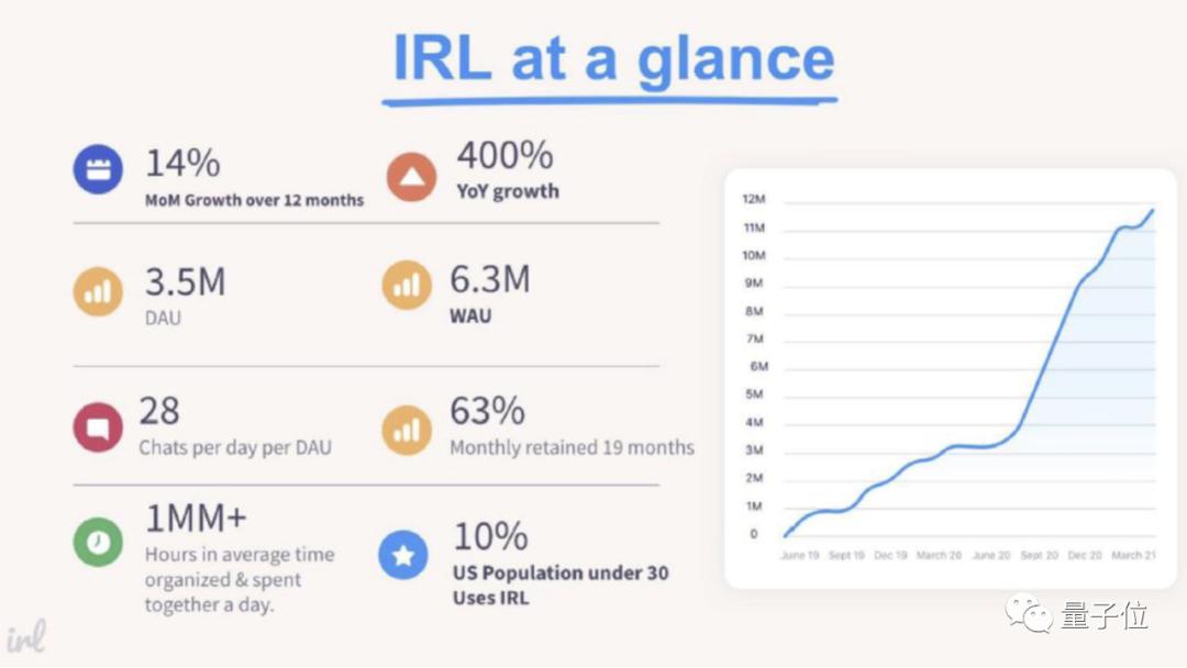 IRL(IN REAL LIFE)是一款社交APP,在2019年才成立,到了2021年,就号称拥有2000万总用户和1200万月活跃用户,在过去15个月内实现了400%的增长”。