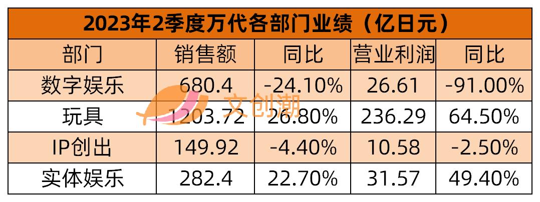 万代最新发布的财报显示,2023日历年第2季度销售额2248.12亿日元,同比增长4%,纯利润217.86亿日元,同比下降41.1%。