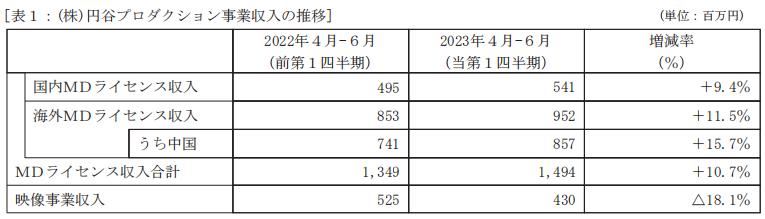 其中,海内外商品与授权收入14.94亿日元,同比增长10.7%。