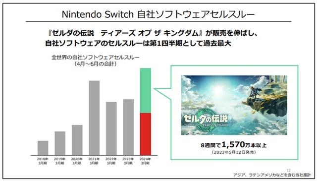 任天堂另一大IP塞尔达,5月发售了新系列《塞尔达传说:王国之泪》,3天售出100万套,销量达1851万套,成为该系列销售速度最快的作品。
