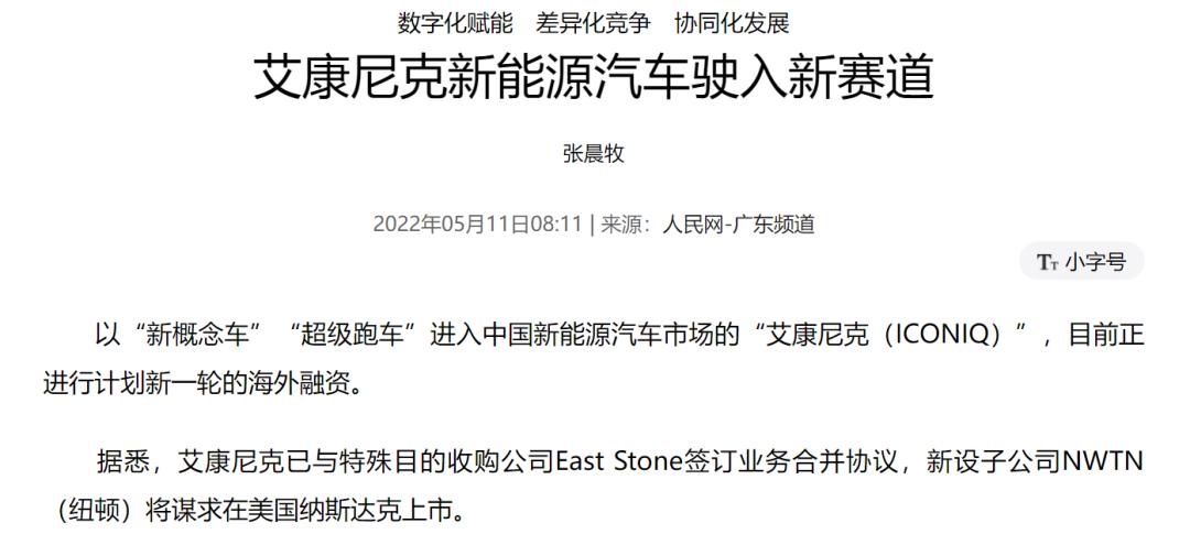 2022年10月24日,纽顿和纳斯达克上市的特殊目的收购公司East Stone Acquisition Corporation向美国证券交易委员会(SEC)提交了最终合并代理声明,并完成与NWTN的业务合并,进而实现曲线上市。
