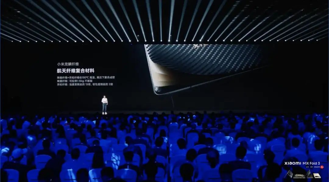 例如,小米为小米 MIX Fold 3 设计了一种特殊的「龙鳞纤维」背盖,这是行业内首次引入陶瓷纤维。钢球跌落实测表明,龙鳞纤维的强度是微晶玻璃的 36 倍,并提供高强度与抗冲击能力。
