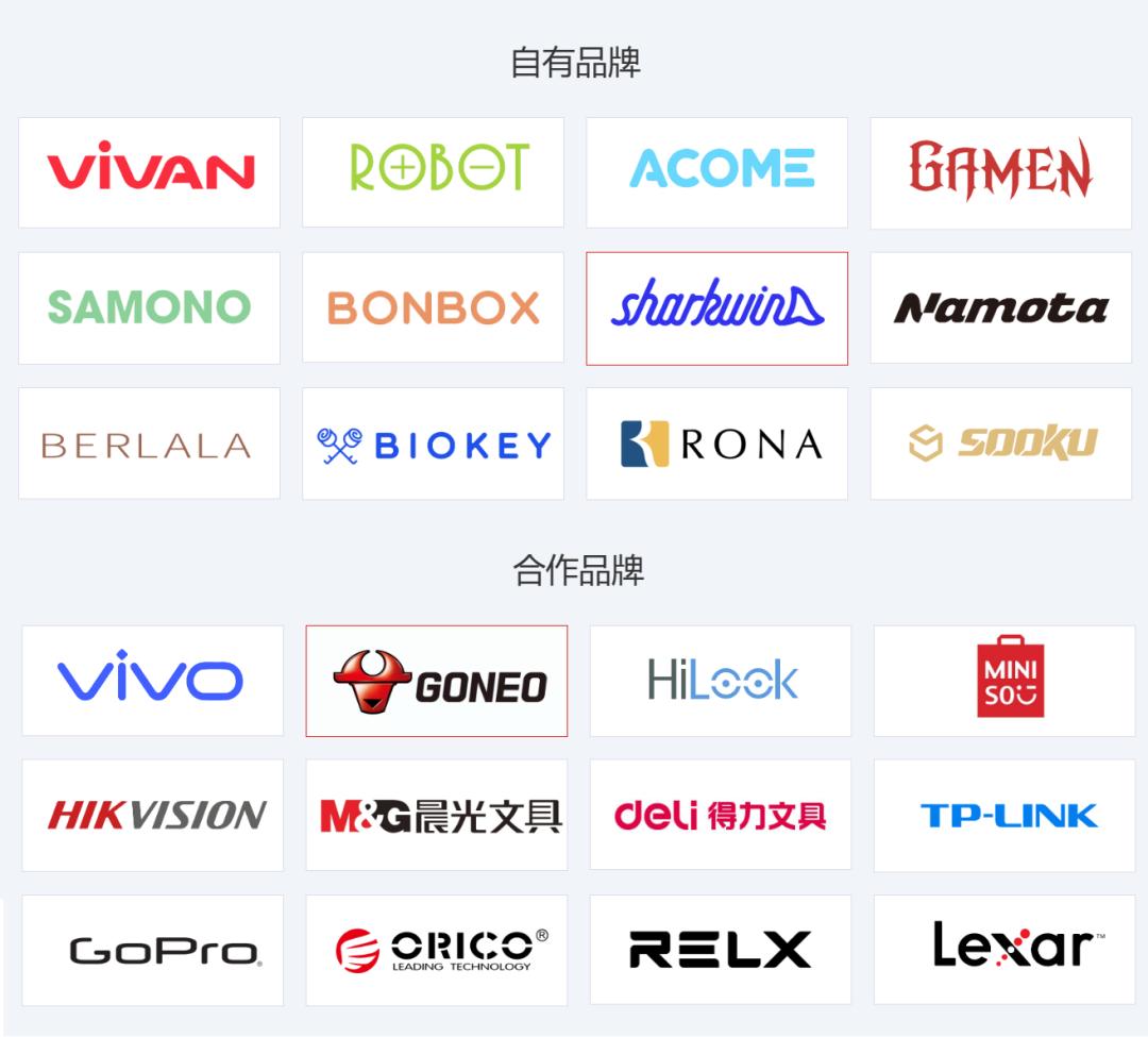 平台自有品牌及合作品牌(截图自WOOK官网)