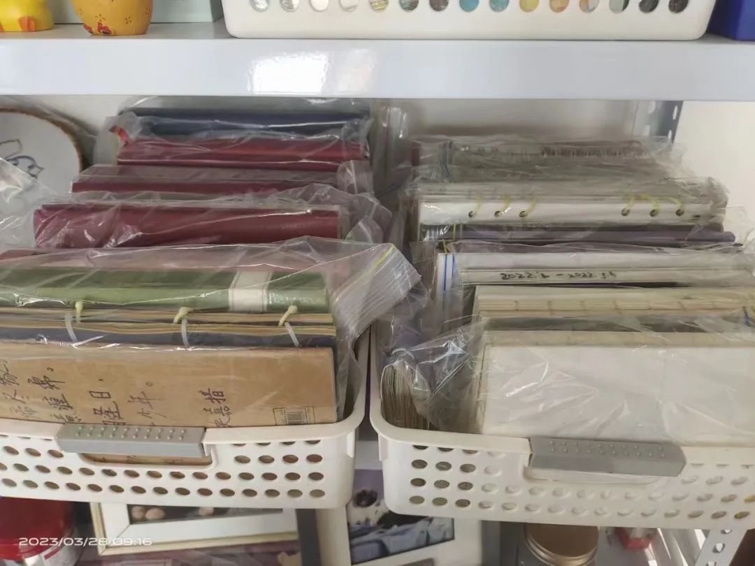 绵绵做过的手账已经集满了几大筐。(图/受访者供图)