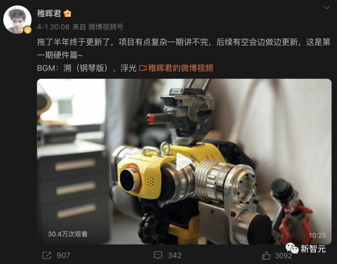 今年4月1日,拖更许久的稚晖君终于更新了一期B站视频,展示了自制的全新双足机器人哪吒。