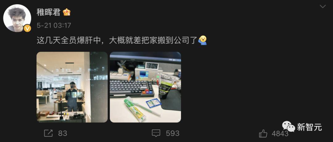 5月21日,稚晖君发博表示,公司全员爆肝重,就差把家搬到公司了,看来大事即将发生。