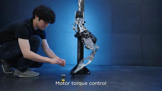 除了展示机器人已经能够平稳的行走外,视频还演示了机器人电机的控制能力