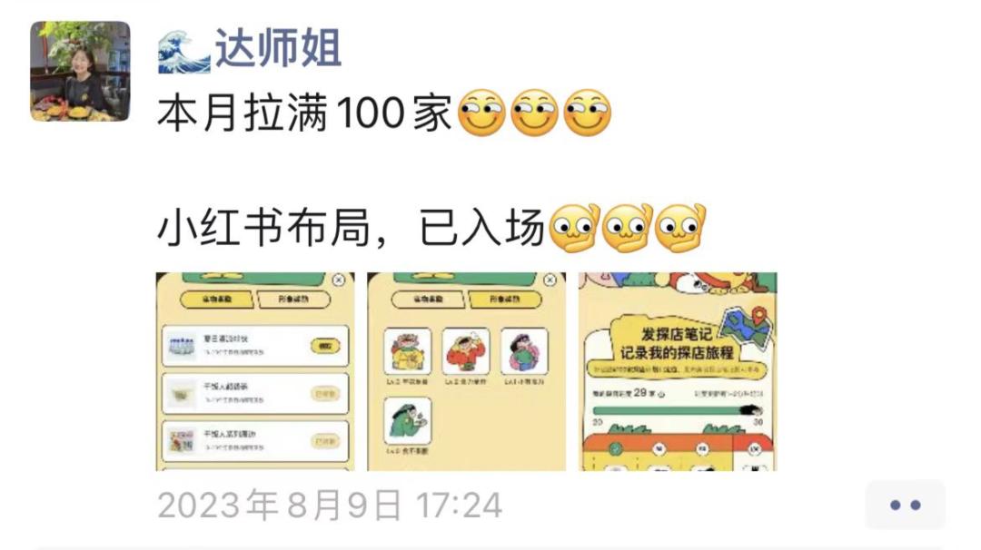 8 月初,达师姐开始参与小红书的“ 100 家探店计划”,现在已经完成 23 家打卡,准备在这个月完成 100 家探店打卡,拿到小红书的奖杯。