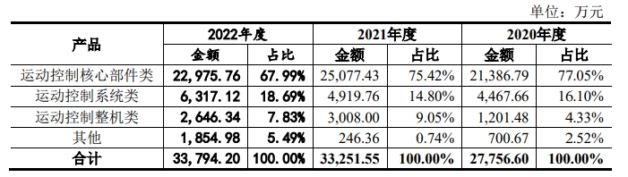 运动控制核心部件类收入构成,图源招股书