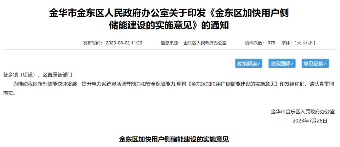 2023年8月2日,浙江金华金东区人民政府发布《金东区加快用户侧储能建设的实施意见》,要求新建设的非居民分布式光伏发电项目原则上按照装机容量的10%以上配建储能系统,额定功率下连续放电时间不低于2小时。至2024年,金东区建成并网10MW/20MWh用户侧储能项目,十四五实现30MW/60MWh的发展目标。意见还指出,鼓励企业用户利用分时电价机制,主动削峰填谷,优化电网负荷需求。