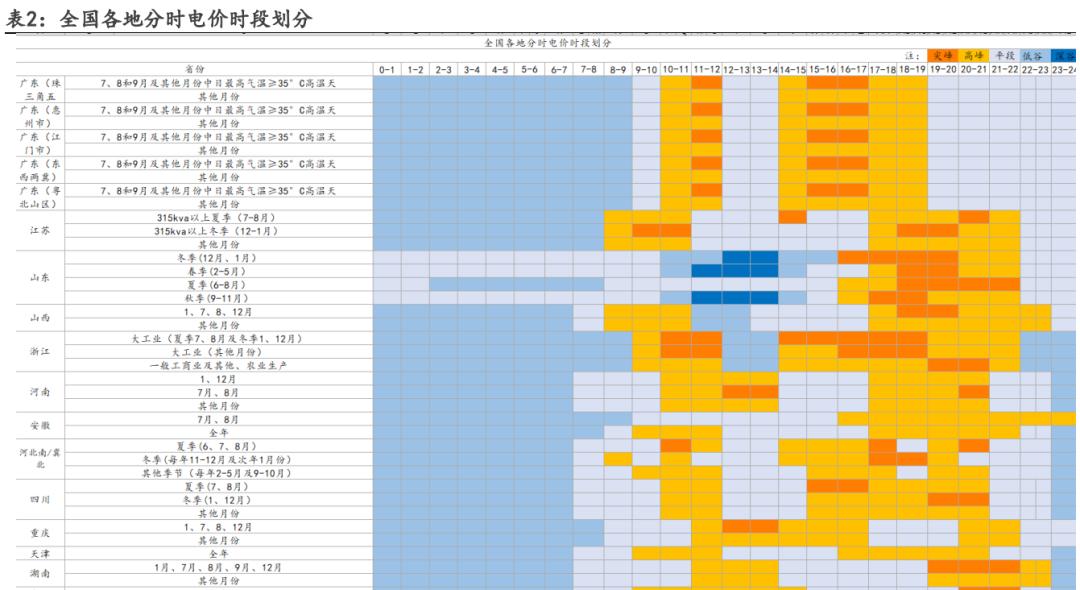 全国各地分时电价时段划分 来源:安信证券《工商业储能经济性再获刺激》