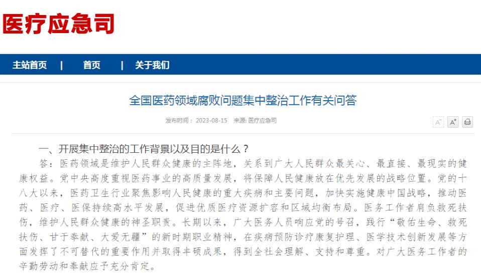 8月15日,国家卫健委发布《全国医药领域腐败问题集中整治工作有关问答》。