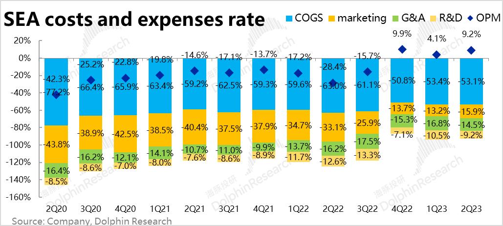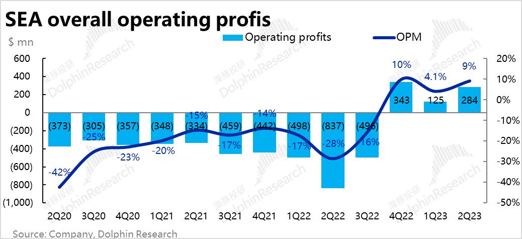 整体上,虽然营收和毛利逊于预期,但公司的费用投入并没有全面转向,总支出环比保持平稳,因此本季度SEA实现经营利润2.8亿美元,环比上季度还是明显提升。经营利润率回到了9%,接近去年Q4的历史最高水平。