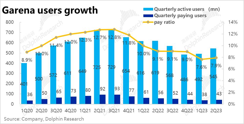 而本季官方数据也显示,季度活跃用户数环比增加了5300万人,付费用户人数也增加了约500万人。付费比率也从上季度的7.6%回升到了7.9%,可见Garena旗下的游戏玩家无论规模和活跃度上都在回暖。