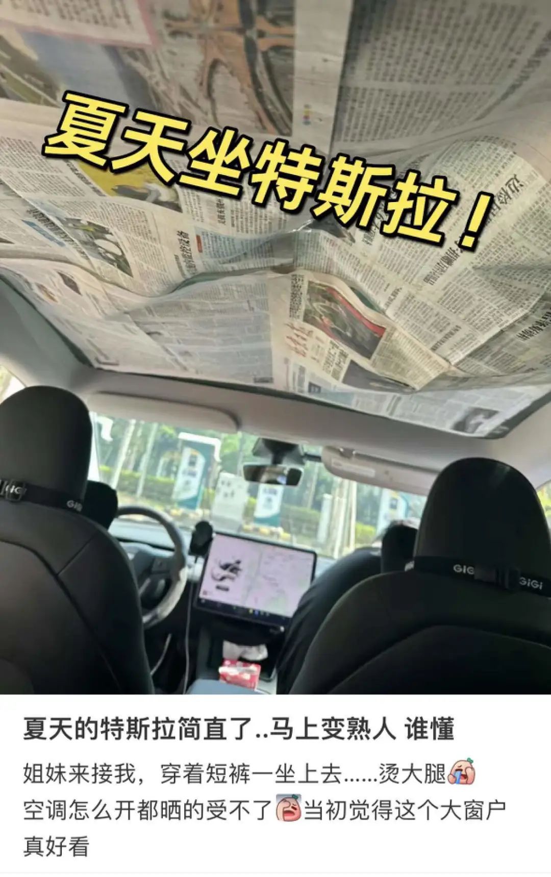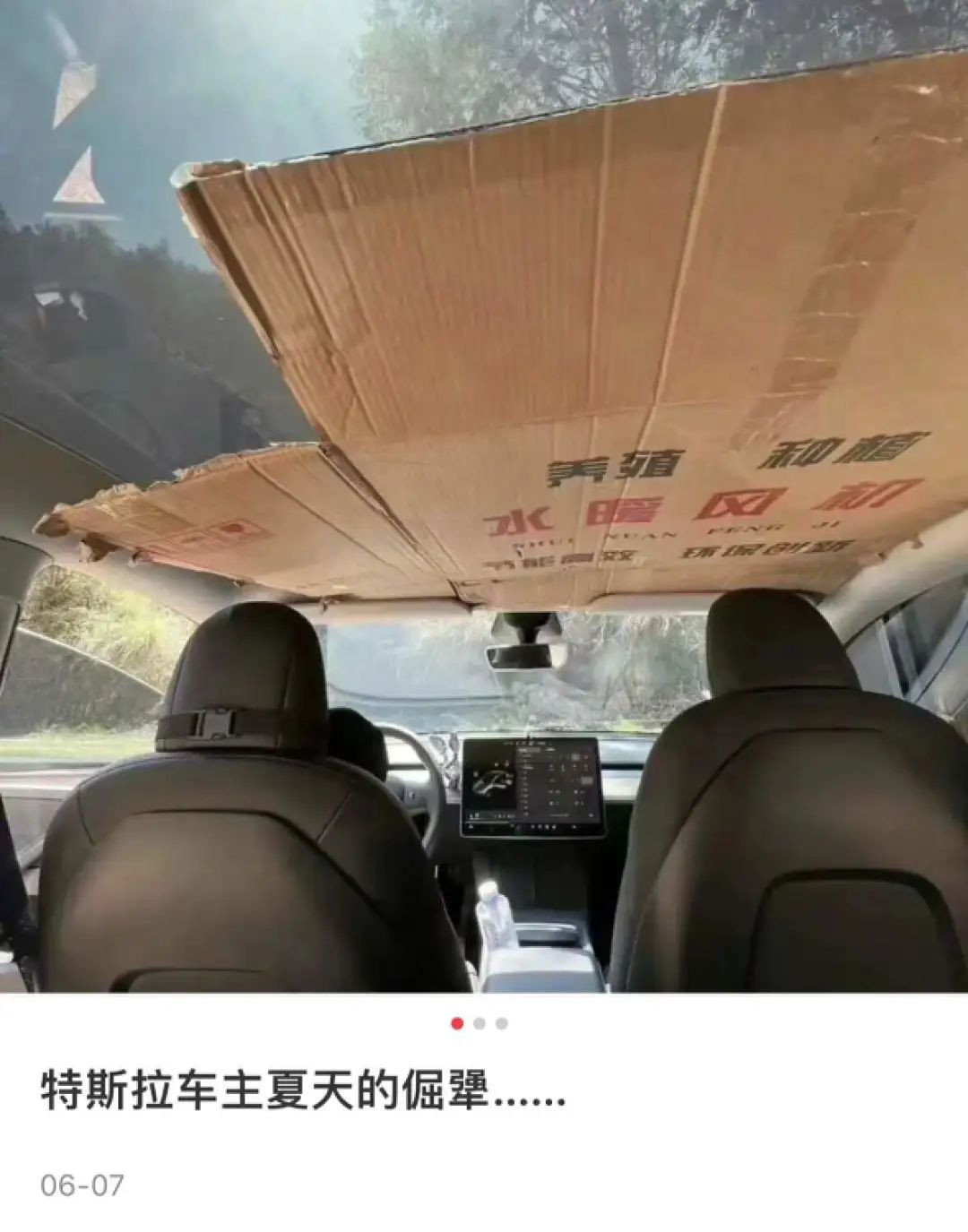 有人在车顶施展防晒狠活,也有人在车内把环保理念贯彻到底。