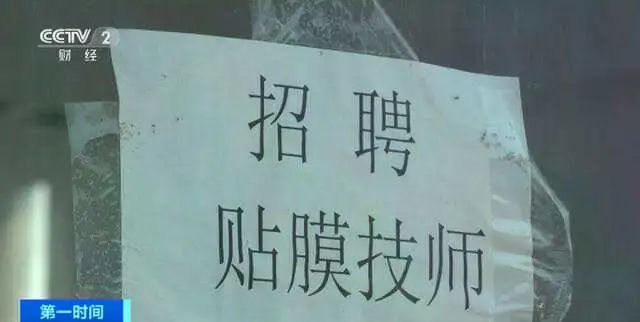 汽车遮阳膜销售门店,张贴着招聘贴膜技师的通知。