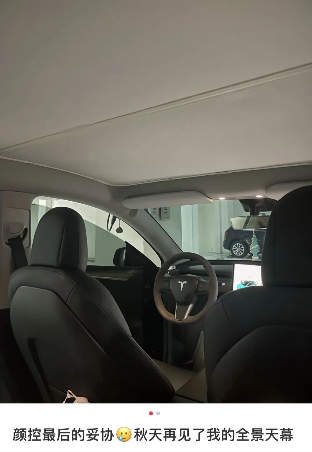 他曾想过给全景天幕也贴防晒膜,但算下来要花两千多,最终在某电商平台买了不到300元的遮光帘代替。