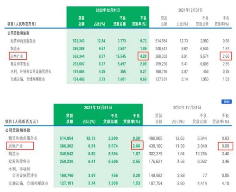 但是,民生银行同期对公房地产业贷款余额占贷款总额的8.77%,不良贷款率为4.28%,占比和不良率均高于同行业可比公司平均值(5.64%、3.23%)。尤其民生银行还与出险房企恒大等来往密切,涉房业务的不良贷款率逐年攀升。