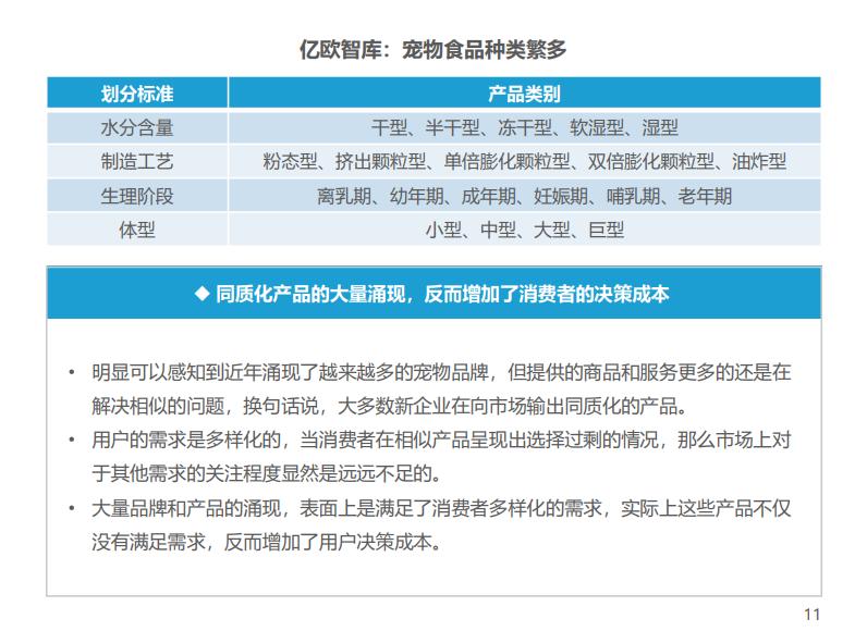 当前市面上的宠物食品、用品面临着较为严重的同质化现象,其最重要的特征体现在功能性的趋同,缺乏实际而具体的生活解决方案,未能满足真正消费者的核心需求,也因此没有自己独特的产品内核,无法形成差异化。而趋同的功能性,也导致了产品形态、概念、场景、价格等基本核心构成要素都高度相似,这种同质化使得用户很难依据不同的品牌价值去选择产品。