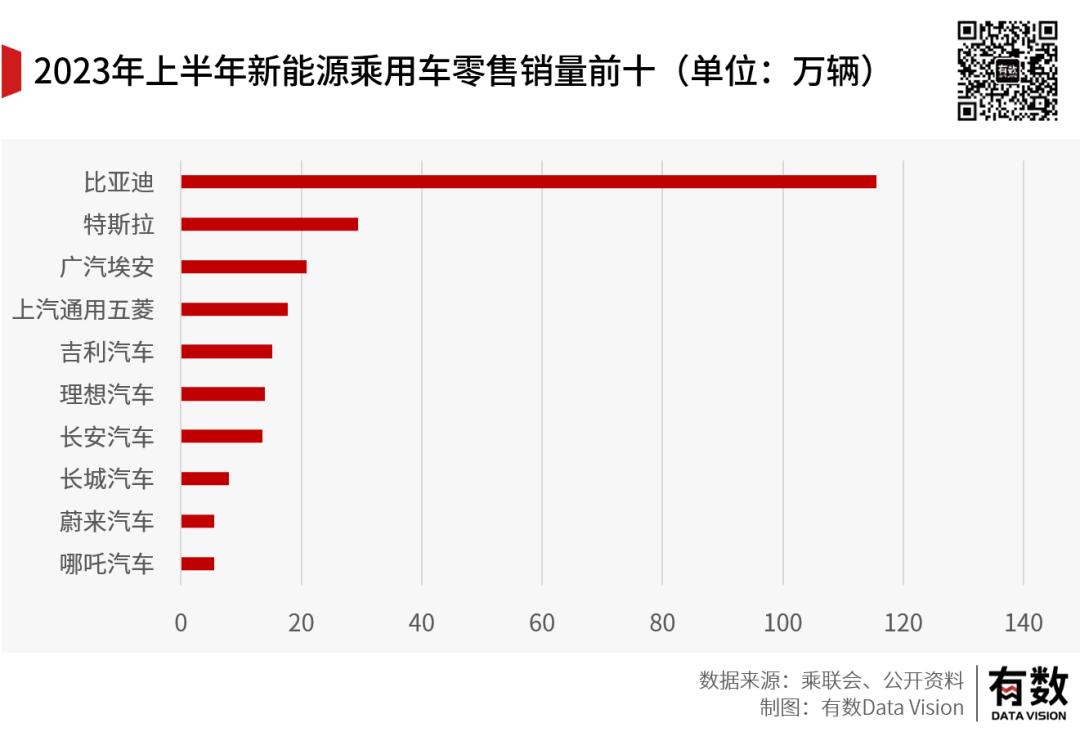 这款车从车体到三电系统全部采用比亚迪方案,等于就是比亚迪把车造出来,最后贴上一个丰田的车标,无限接近于OEM模式。最新数据是今年6月,这款车的销量为3030辆,总算勉强能挤进前30车企的水平。